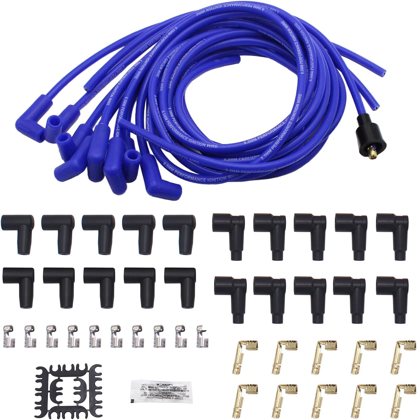 YUCHENSHLP 1 Set 8.5mm Black 90 Degree Boot Spark Plug Wires W/ Looms Specification: Condition:100% Brand New Colour:Black Type:Universal Engine Type: V8 Diameter (mm): 8.50mm RFI Suppression: Yes Distributor Terminal Ends: Male/HEI and Female/Socket Distributor Boot Material: Silicone Spark Plug Boot Ends: 90 degree Spark Plug Boot Material: Silicone Coil Wire Included: Yes Conductor Style: Spiral core Quantity: Sold as a set. NOTE: WE ARE Factory direct sales that high-quality aftermarket parts, 100% warranty, if you have any questions, please contact our YUCHENSHLP customer service through Amazon in time, we will serve you online 24 hours. WE HAVE 135 Degree/ 180 Degree/ other size/ type Boot Spark Plug Wires AVAILABLE IN OUR STORE AS WELL.