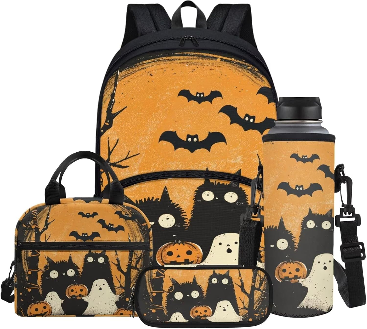 4 piece school bag set: Children's backpack: This backpack is made of high-quality polyester fabric. It is washable, lightweight and durable. Its large capacity can easily hold more items, and it is very suitable for children aged 5-16. Lunch bag: The lunch bag is made of 300D high-quality polyester material, which is not easy to fade and not easy to shrink after washing. The aluminum film material is heat-insulating and stain-resistant, making it safe and comfortable to use. The hand strap is ergonomically designed to reduce pressure, so your hands will not get tired after holding it for a long time. Zipper Pen Bag: Multifunctional 300D polyester bag, suitable for storing pens, mobile phones, cosmetics or office stationery. Water bottle cover: The water bottle cover is made of polyester fiber, which can prevent scratches and protect the surface of the water bottle, suitable for indoor and outdoor activities - This 4-piece set makes the perfect gift for family, friends, children, or even your own birthday, back-to-school, Thanksgiving, Christmas, or New Year's celebrations. Note: - Wash with room temperature water; avoid using hot water and wash separately to prevent staining. - Due to different measurement methods, the size error of 0.5-1cm is within a reasonable range. - Due to changes in lighting or screen display, normal color differences may occur between the product and the picture. -If you have any questions or help, please feel free to contact us.