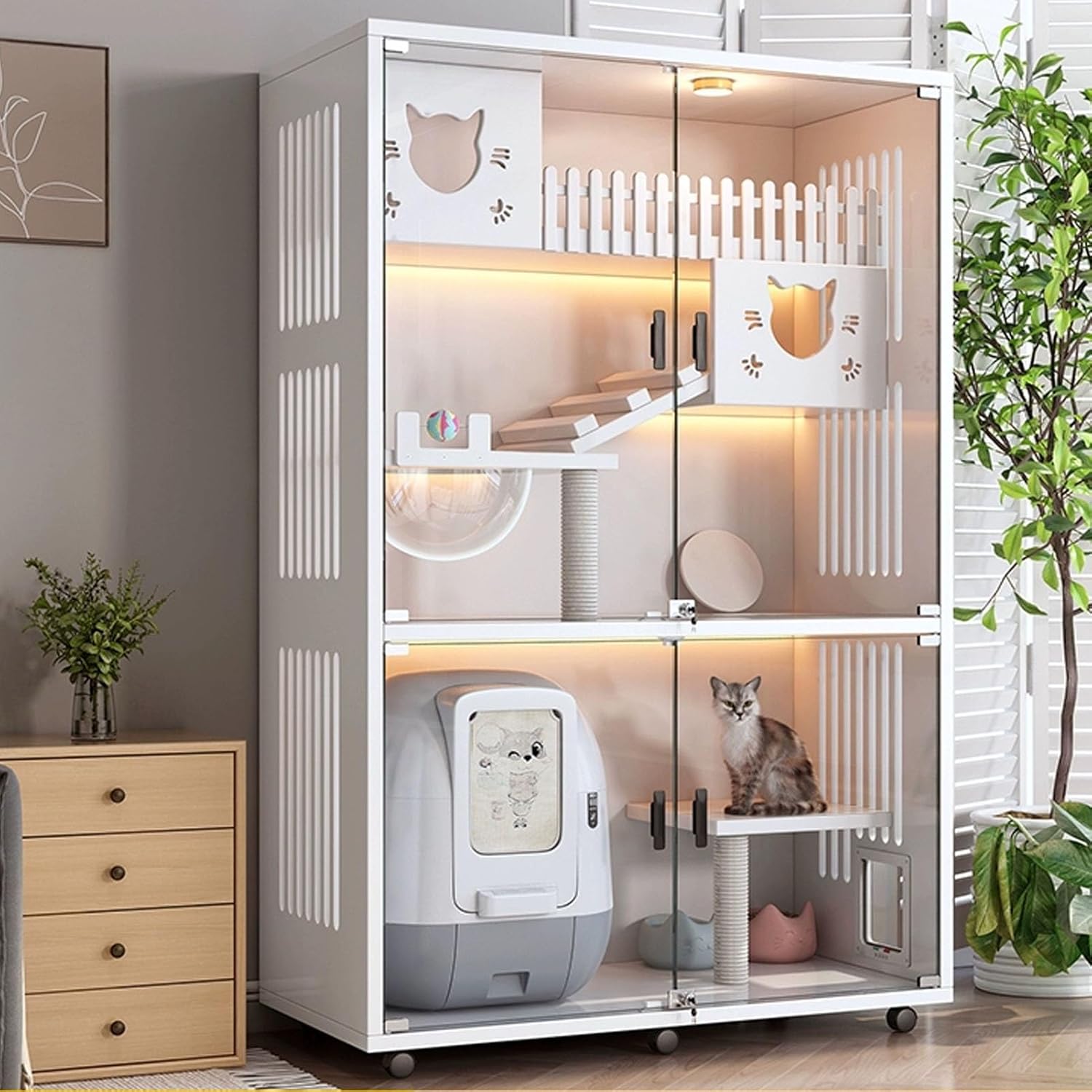 YQMHEZ Cat Cage Not only for cats, but also other small animals like guinea pigs, rabbits and more.You’ll find whichever one you choose a great playground for your pet.Product Description:▪ Product Type: Cat Cage▪ Material: Wood ▪ Color: Brown , Natural , White▪ Assembly: Assembly Required▪ Size:65x120x120cm, 25.5x47.2x47.2in70x120x120cm, 27.5x47.2x47.2in65x120x180cm, 25.5x47.2x70.8in70x120x180cm, 27.5x47.2x70.8inNotes before purchase:The cage you choose is a bare cage, and the supplies shown on the product are for display only.Packing List:Cat CagePlease Note1. Although we try our best to display the most accurate colors, colors may vary due to differences in computer monitors.2. Due to manual measurement, there will be an error of 1-3 cm in product size
