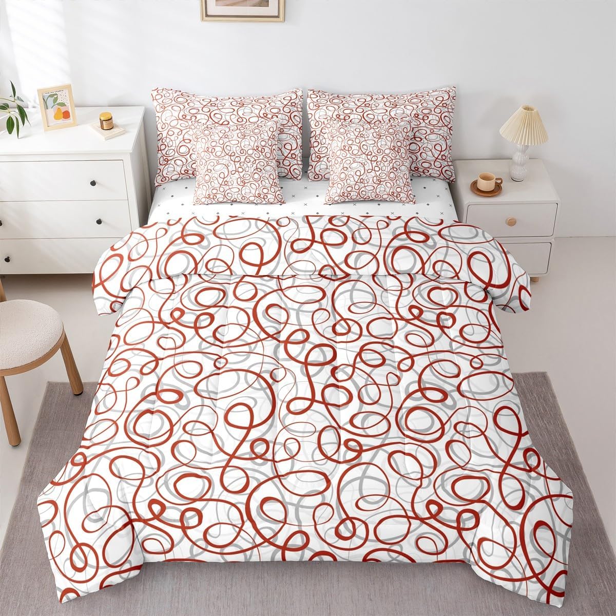 Colorful Makeover to Your Life Various size and color options, there are always decor room. Size Options: 7 Pieces Twin Size,1 Comforter 68"x 90", 1 Fitted Sheet 39"x75"x16", 1 Flat Sheet 96"x66", 2 Pillow Cases 30" x 20",2 Throw Pillow Covers,Covers Only. 18"x 18". 7 Pieces Full Size ,1 Comforter 79"x 90", 1 Fitted Sheet 54"x75"x16", 1 Flat Sheet 96"x81", 2 Pillow Cases 30" x 20",2 Throw Pillow Covers,Covers Only. 18"x 18". 7 Pieces Queen Size,1 Comforter 90"x 90", 1 Fitted Sheet 60"x80"x16", 1 Flat Sheet 102"x90", 2 Pillow Cases 30" x 20",2 Throw Pillow Covers,Covers Only. 18"x 18". 7 Pieces King Size,1 Comforter 104"x 90", 1 Fitted Sheet 78"x80"x16", 1 Flat Sheet 106"x90", 2 Pillow Cases 36" x 20",2 Throw Pillow Covers,Covers Only. 18"x 18". Decoration: For your mom, dad, sister, brother, grandma, wife, husband, and all other beloved with many surprising designs. You can find a design for everybody and every interest in our collection. Your Home,You Decide Different types of bedding sets could bring rooms in different styles. Also, rooms in different styles needs different types of bedding sets