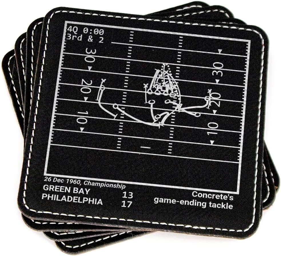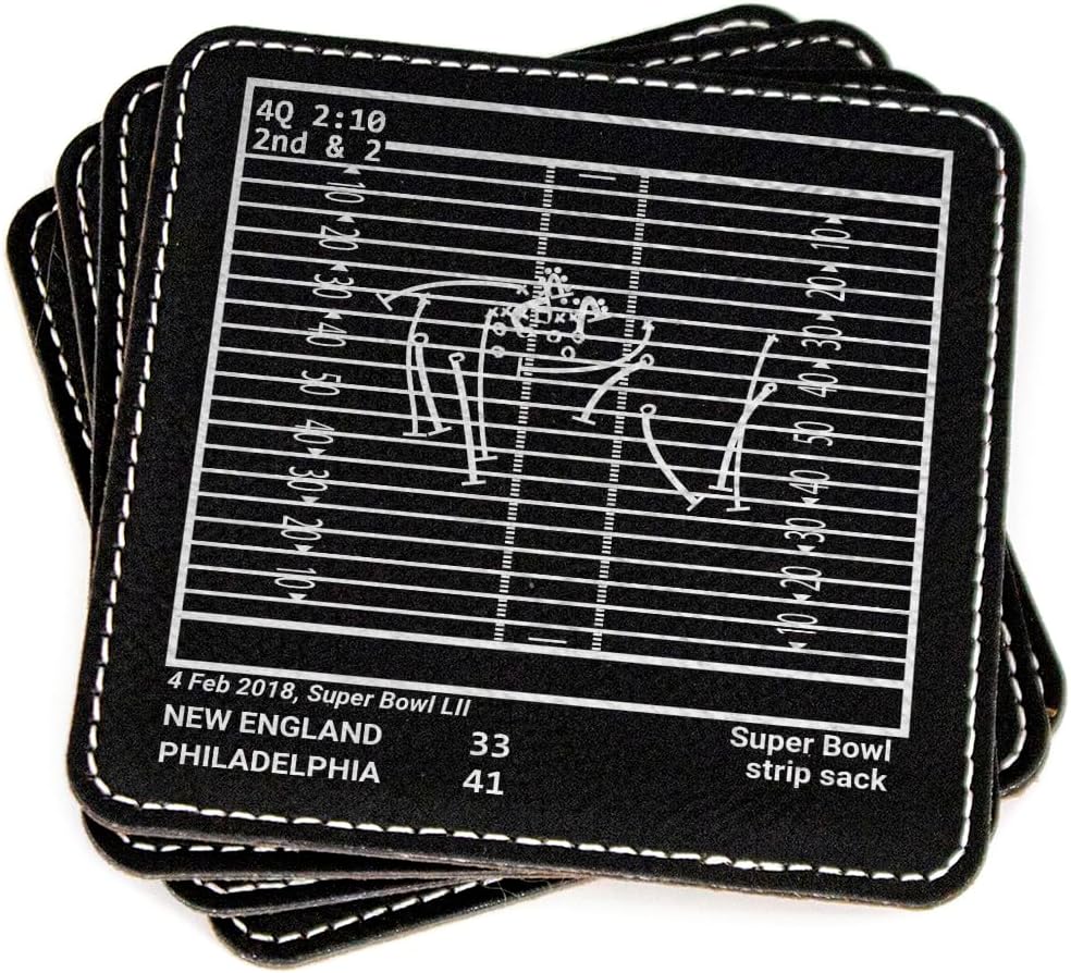 Four Distinct Plays From Rams 2022 Set History Relive four of the greatest moments in pro football history. Each set comes with four laser-etched coasters depicting iconic moments and plays that every fan remembers The Perfect Gift 16,000+ Five Stars across all selling platformsOur coaster sets are adored by sports lovers. A unique Rams 2022 Set gift idea for men - your dad, son, friend, father's day, christmas, or any sports fan in your life! Something Different Extremely unique, our coaster set brings something new and asethtic. Not the same-old logo slapped onto a product, our coasters showcase memories that real fans immediately recognize as they begin telling stories about their favorite moments. These slate coasters are made from 100% real natural slate and laser-etched to maintain durability, prevent flakey paint like other coasters, and bring a clean and aesthetic look to any room or office in your house. A great home decor option for you or your loved one. These leatherette coasters are laser etched to reveal a vibrant silver foil. Size: 4'' x 4'' x 0.15'' per coaster Weight: 0.2lbs (3oz) Stitched border Notice: No sports player, team, league, or playoff is affiliated with Playbook Products or is the source of, is responsible for, or has endorsed, sponsored, or authorized these products or this website.