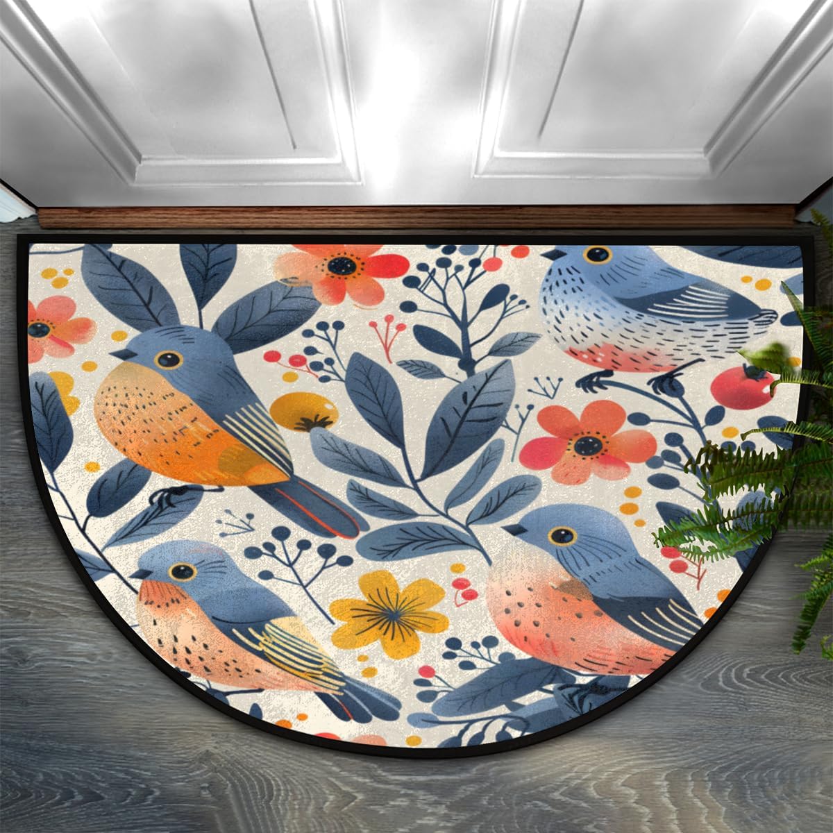 Product Specifications Product Size: 24 * 36 inches Thickness: 1CM Material: microfiber fabric + high density non-woven fabric interlayer + anti-slip particle synthetic material Package Weight: 0.9lb Package: 1 * doormat Features: soft, absorbent, wear resistant, non-slip, not fading Advanced Printing Technology Utilizing digital printing technology, our front door mat indoor entrance features vibrant colors and a fade-resistant design, ensuring long-lasting visual appeal and adding a touch of style to your entryway. Soft Texture & Absorbent This doormat indoor entrance is soft to the touch, with a delicate texture that does not pill or fade, designed to withstand daily wear and tear. At the same time. Its absorbent nature can keep your floors clean and dry Why choose our door mats? Made from high-quality materials, welcome mats for front door are designed to effectively absorb water and dirt. Their half circle shape and low-profile design effortlessly blend with any indoor entrance, adding a touch of elegance and sophistication and making them perfect additions to any indoor entrance, ideal for creating a welcoming and clean environment. Note Due to factors such as lighting, monitor resolution, and environment, there may be slight differences between the image and the actual product.