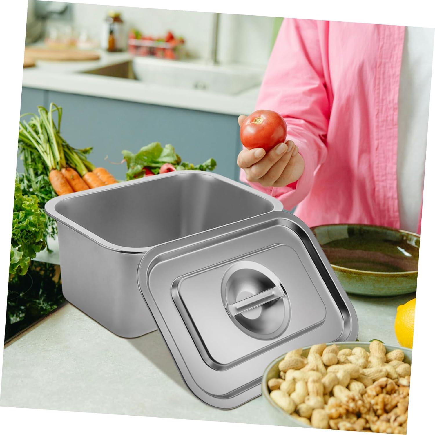 Package Include 1 x Storage basin 1 x Lid Features -Convenient countertop placement: designed to sit on your kitchen countertop, this compost bin is always within reach, making it easy to dispose of food waste compost bucket with lid for kitchen -Size:32.00X22.00X15.00cm/12.58X8.65X5.89in compost container for kitchen -Material:Stainless steel compost bins for kitchen -Encourages waste segregation: helps you to separate food waste from other trash, composting and reducing the amount of waste sent to landfills food scrap bin -Easy to clean: the smooth stainless steel surface is easy to clean, ensuring that your stainless steel composting bin remains clean and ready for use stainless steel bin -smell control lid: the secure lid design helps to contain food scraps and prevent smell from escaping, keeping your kitchen smelling fresh composting bin -Color:Silver indoor compost bins -Sturdy material: crafted from sturdy stainless steel, this food waste bin for kitchen compost is and resistant to damage, ensuring longterm use kitchen compost bin countertopGoods Informationcountertop compost bin with lid The stainless steel compost bin with lid is a must-have for any eco-.storage bins with lids for kitchen Place it on your kitchen counter for easy access or store it in a cupboard to keep your space tidy.compost bin kitchen counter Its construction allows it can handle daily use, while the lid keeps unpleasant smells contained.desktop trash can This bin makes it simple to collect and compost food waste, helping you reduce your household's environmental impact