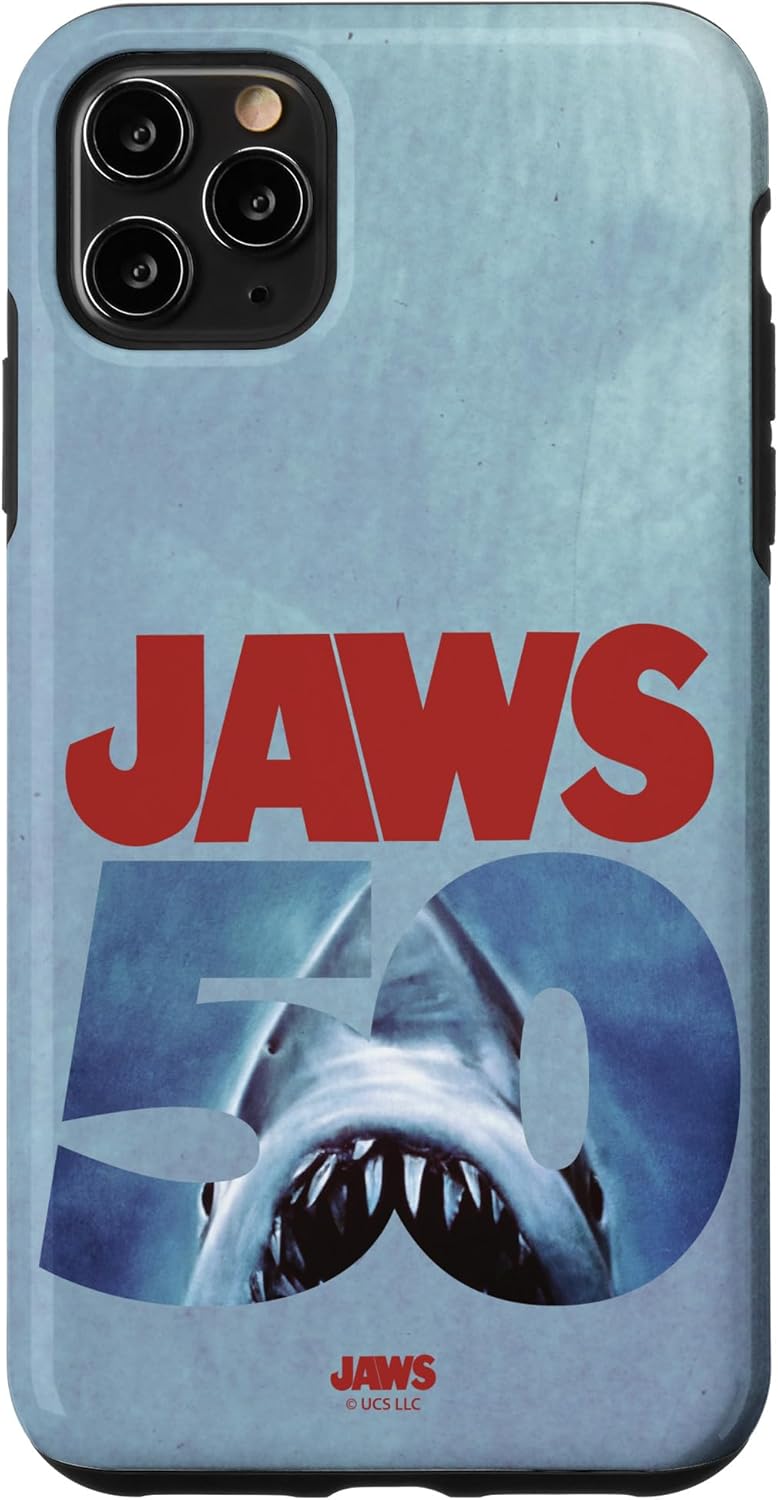 Jaws Anniversary Merchandise design. For half a century, Jaws has been making waves as one of the greatest thrillers of all time. This official Jaws 50th Anniversary design reimagines the unforgettable poster art that introduced the world to Amity Island’s ultimate nightmare. A bold, clean Jaws 50th Anniversary logo lets the legendary shark speak for itself. This dual-sided design features a Jaws 50th logo on the back, celebrating the legacy of this iconic thriller. Whether you first saw it in theaters or are just diving into the horror classic, this design is a must have for any fan of the deep-sea suspense. Celebrate the origin of your fear of the ocean with this Jaws design. Get ready for your next day at the beach with Jaws! Visit our official Amazon page to explore more Jaws merchandise, including Jaws T-shirts, Jaws hoodies, tanks, V-necks, raglans, sweatshirts, zip hoodies, throw pillows, cellphone grips, cellphone grip wallets, Tumblers, phone cases, totes, and more.
