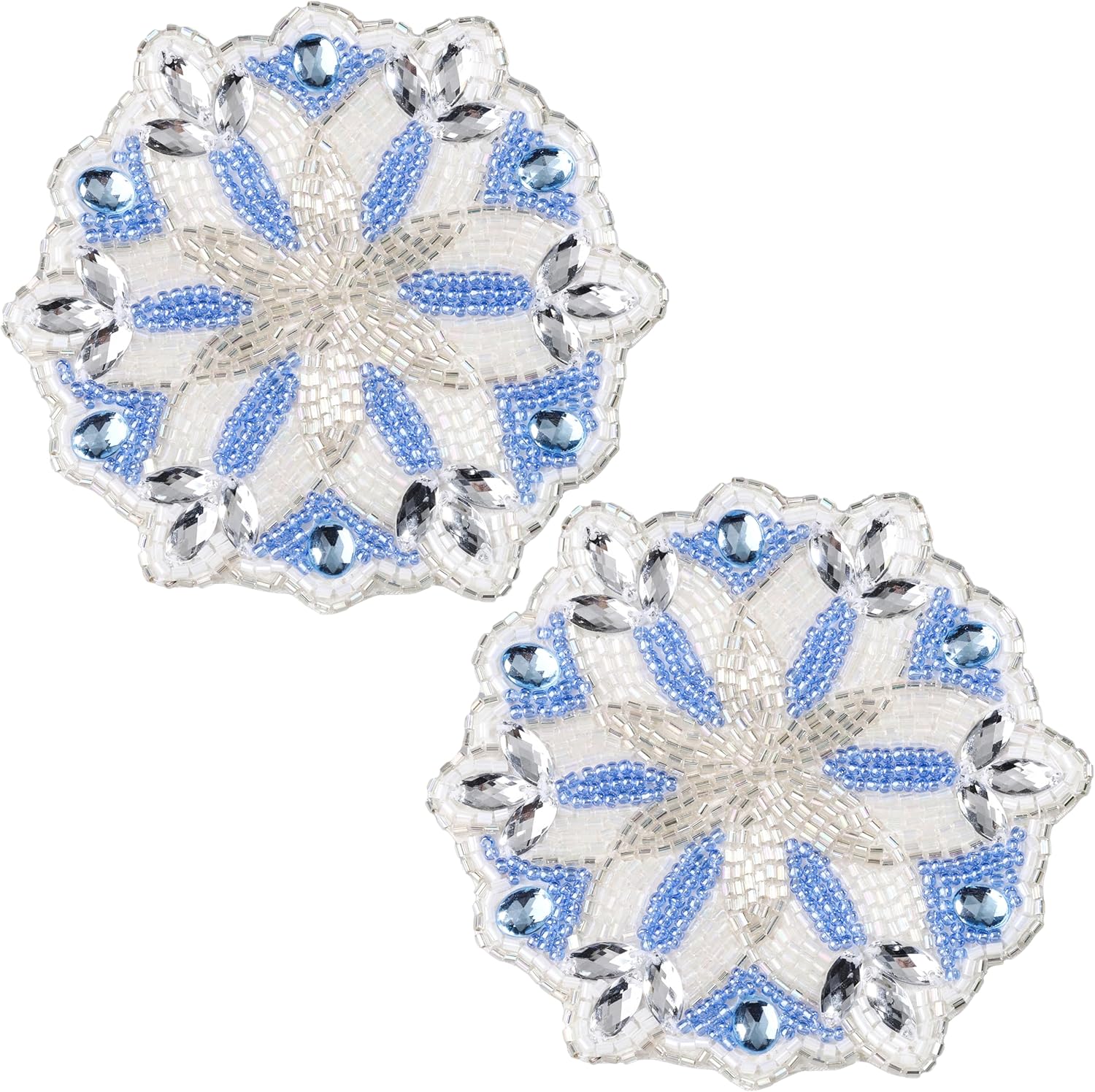 About Abvokury Abvokury is synonymous with meticulous attention to detail and uncompromising quality in handcrafted home accessories. Our seasoned artisans create uniquely beaded coasters, carefully selecting premium materials to produce elegant pieces that reflect your refined taste. Abvokury focuses on crafting handmade décor, ensuring each item showcases exceptional artistry and functionality.Product DetailsElevate your table settings with our exquisitely handcrafted beaded coasters. Each coaster is intricately designed by skilled artisans, featuring elegant patterns with jewel-toned beads. Enhanced with a premium artificial leather backing, these coasters offer superior waterproof protection and anti-slip functionality, ensuring stability and durability. Perfectly sized at 4” x 4”, they effortlessly accommodate various drinkware, making them ideal for any occasion. Their chic design also makes them a thoughtful and versatile gift.Dimensions: 4 inches x 4 inches.Material: Glass beads with premium waterproof artificial leather backing.Care Instructions: Simply wipe clean with a damp cloth to maintain delicate bead detailing and leather backing.Versatility: Ideal for home décor, entertaining, gifting, and daily use, adding elegance and protection to any table surface.