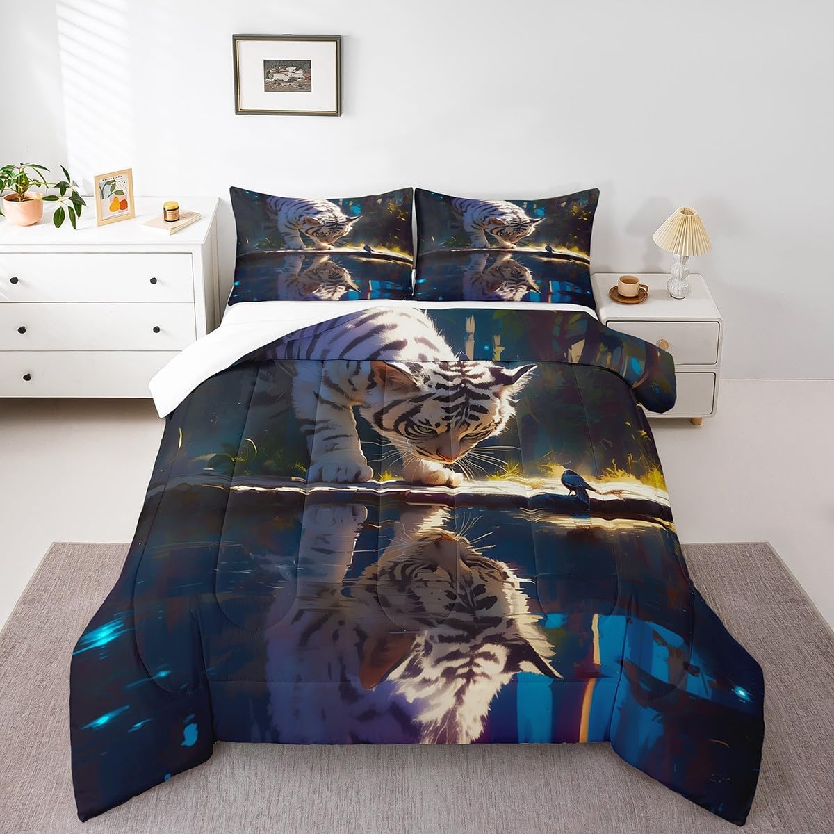 Best blessings: Makeover your bedrooms every season with our Comforter sets. Perfect item for your room, girls boys youth room, master bedroom. Also can order it for your mom, dad, sister, brother, grandma, wife, husband, daughter, son and all other beloved. Size Information: 1 x Toddler size down comforter 42"W x 58"L, 1 x quilted pillow case 30"W x 20"L, 2pcs. 1 x Twin size down comforter 68"W x 90"L, 1 x quilted pillow case 30"W x 20"L, 2pcs. 1 x Full size down comforter 79"W x 90"L, 2 x quilted pillow cases 30"W x 20"L,3pcs. 1 x Queen size down comforter 90"W x 90"L, 2 x quilted pillow cases 30"W x 20"L,3pcs. 1 x King size down comforter 104"W x 90"L, 2 x quilted pillow cases 36"W x 20"Lx,3pcs. Useful and practical: A luxurious product for homes, dorm rooms, hotels, guest rooms. Practical to use for being polyester, feels like cotton which is super soft and breathable. No chemicals used, No dye substance harming the health of you or your family. Unique design: Vivid Colors won't fade thanks to new 3D digital printing methods. These unique designs match well with various color palettes of your rugs, curtains, headboard, furniture, and all other decor accessories. Personalized: As manufacturers of digital printed home textiles, we follow current trends and bring you the latest home fashion. You can give it to your family or friend, relative or boyfriend girlfriend, or to yourself, the item should be interesting and authentic. Note: Machine washed in cold water. Do not bleach, Tumble dry low. The Bedspread and Pillow Shams are printed on the Front Side Only.