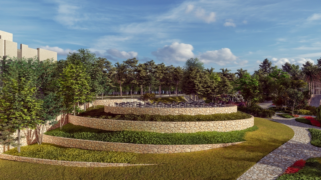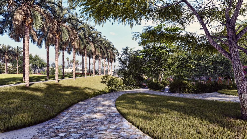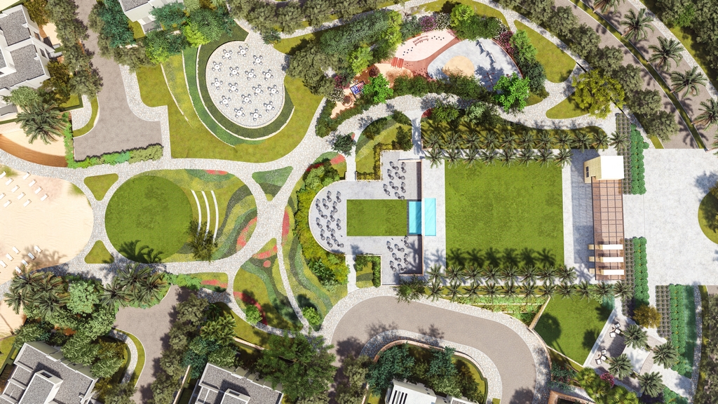 This moment of awe unfolds into a carefully choreographed descent: a winding path through vibrant planting reveals the beach shoreline below, forming a sensory sequence of discovery. The Entry Park embodies Azha’s promise — where bold design meets natural beauty to create lasting impressions.